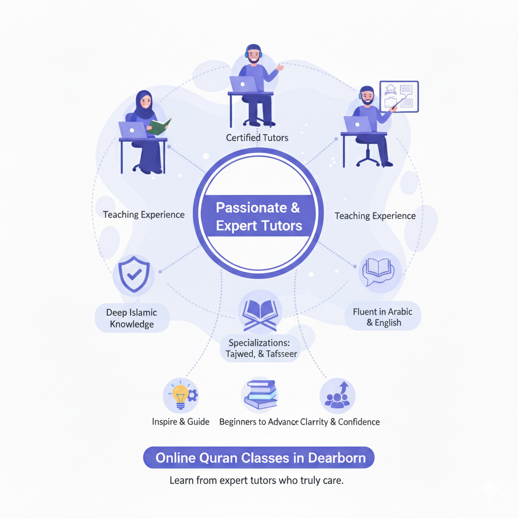 Whether it’s Quran tutors in Dearborn helping beginners or advanced learners joining online Quran learning in the USA, our commitment remains the same — to provide authentic Quran education rooted in compassion and excellence. These Quran classes online are not just lessons; they’re a spiritual journey that strengthens faith and character.