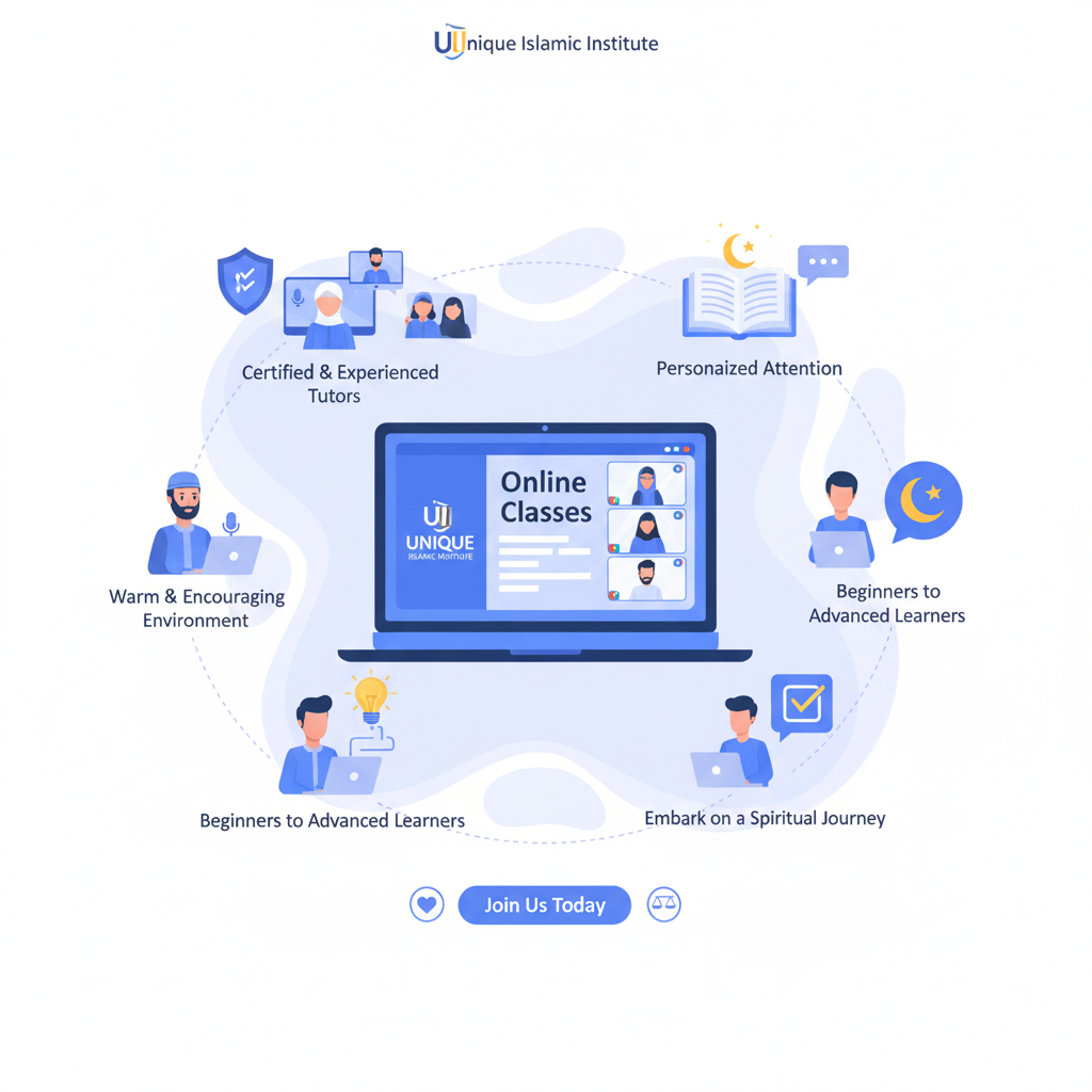At Unique Islamic Institute, your comfort, confidence, and growth are our priorities. With just a few clicks, you can embark on a life-changing journey to learn, understand, and love the Quran — from the heart of your home in Dearborn.